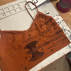 you and your friends can enjoy the unbridled creative energy that comes from customizing the art you get to wear, using our hand carved stamp blocks at our studio. Price includes 30 minutes of set up, 1.5 hours of printing time, up to two garments from stock, printing supplies, 30 minutes of clean up, and post activity ink curing. Bring your own additional items to print for a small materials usage fee. Ink used is water based fabric ink and will need time to cure and be heat set. All items will be ready for pickup from the Studio 1 week after class unless otherwise discussed. Shipping available on request at cost. Available stamp design categories include flowers and plants, stars and moons, medieval woodcuts, swords, tchotchkes, fantasy, and oceanic.